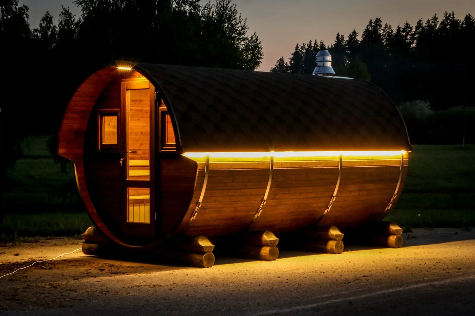 Баня-бочка круглая из кедра с боковым входом (все размеры)