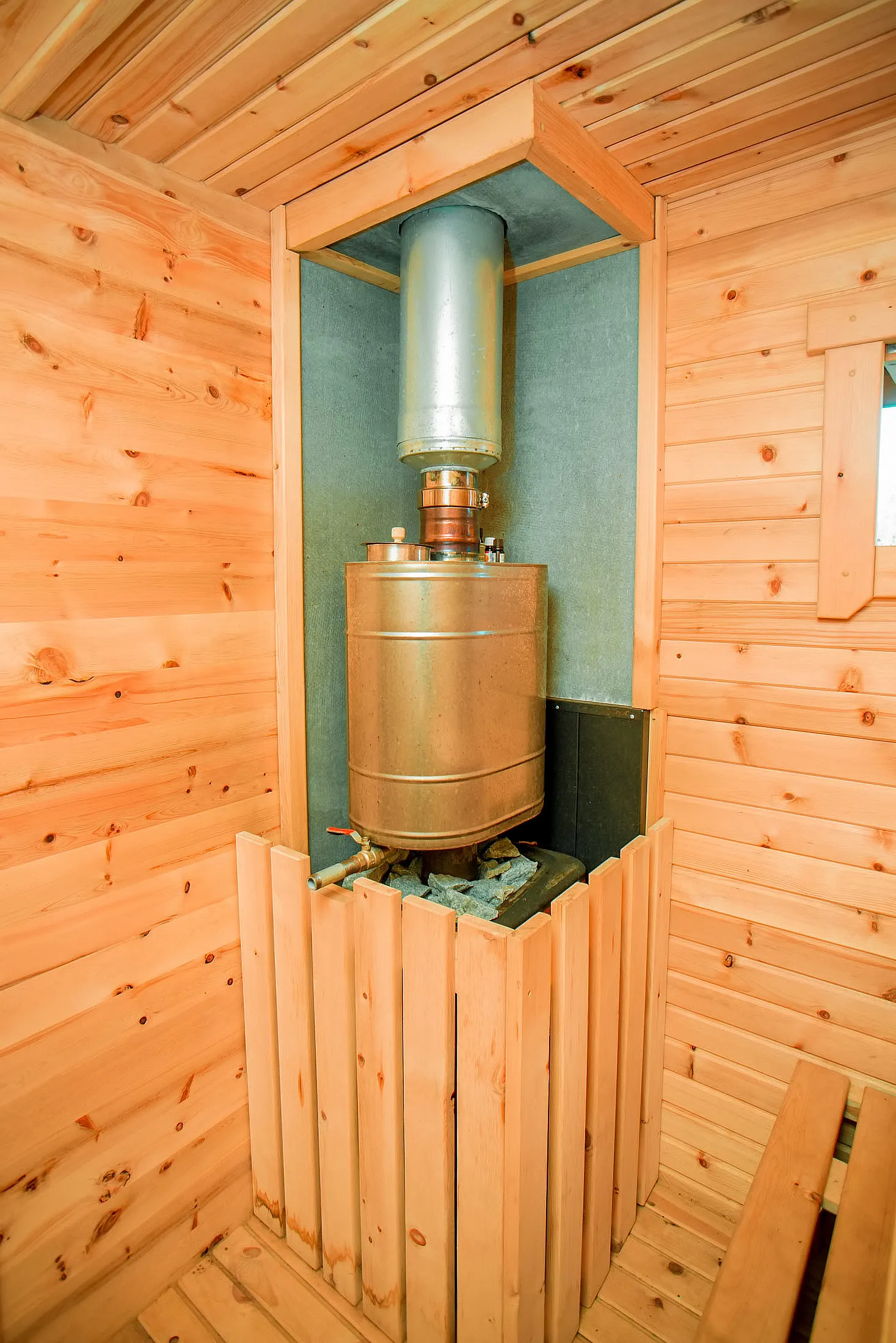 Баня-бочка представляет собой конструкцию в виде бочонка без углов. Такая форма считается оптимальной для равномерного распределения пара по всей внутренней поверхности парной. Таким образом, пар не скапливается в одном месте, а циркулирует по всему объему. Соответственно, круглая (квадратная, овальная) баня экономичная: топится быстро, требует дров мало.