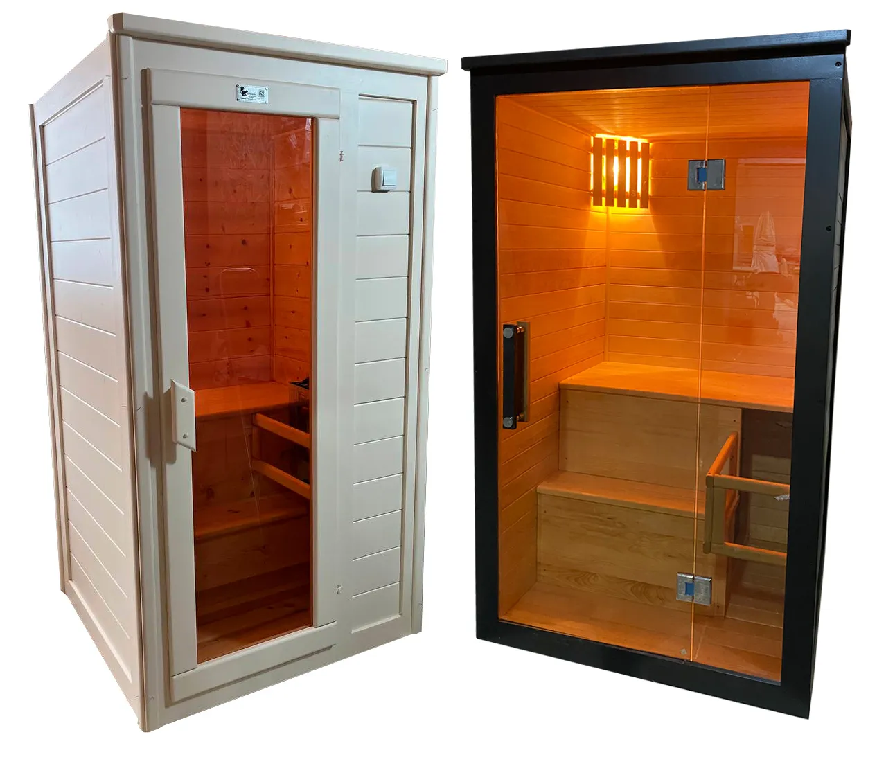 Это специально оборудованная деревянная кабина для сухого и влажного парения. Электропечь нагревает пространство внутри и позволяет сбрызгивать камни водой, слегка увлажняя воздух. Такая процедура позволяет избежать перегрева. Сауна обшита снаружи и внутри вагонкой из липы и имеет теплоизоляционный слой. Установка сауны в угол позволяет рационально использовать пространство помещения. Финская сауна с электропечью подойдет как для домашнего использования, так и для коммерции. Доставляется в разборном виде щитами, собирается по инструкции с помощью шуруповёрта.