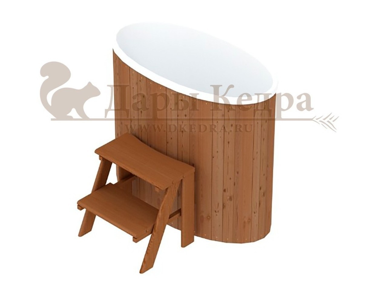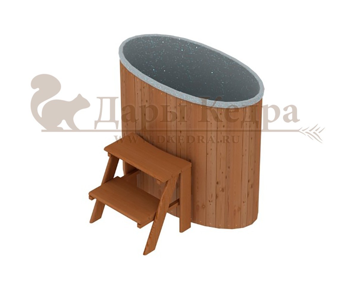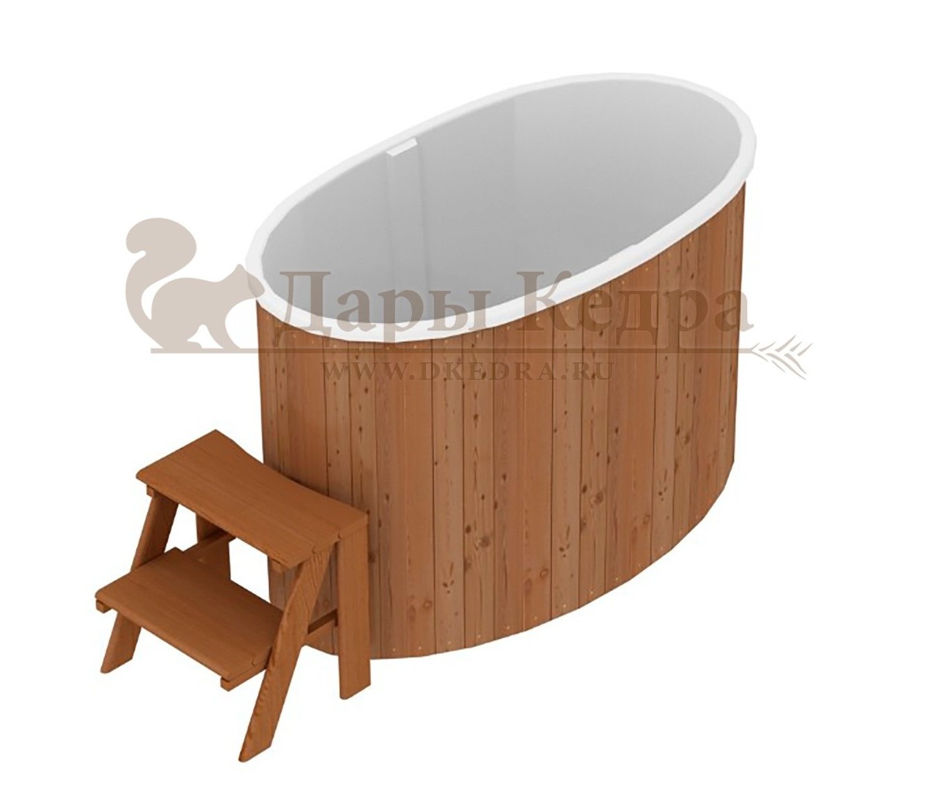 Овальная композитная купель «НОТА 98» Это купель с внутренней овальной чашей, которая изготовлена из современного прочного и термоустойчивого материала (композита). Форма чаши обеспечивает комфортную посадку внутри изделия. Для удобного использования купель оснащена приставной лестницей. Обручи из нержавеющей стали декорируют купель с композитом и равномерно распределяют нагрузку во время процедур. Подходит для установки в помещении и на открытом воздухе. При уличном использовании, рекомендуется дополнительно оборудовать купель водогрейной твердотопливной печью. Композитная вставка облегчает уход за изделием и увеличивает срок службы купели.