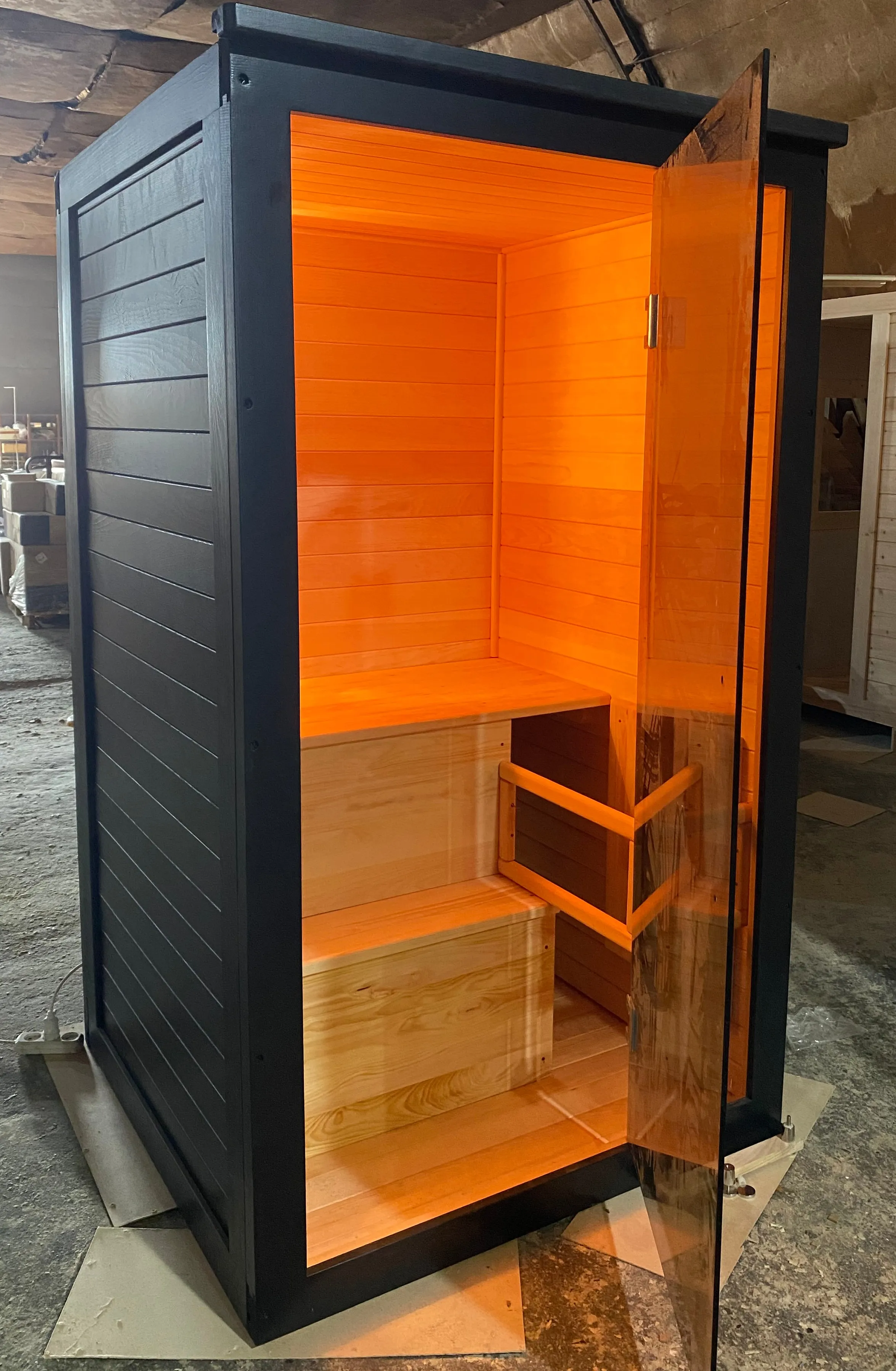 Финская сауна с электрокаменкой представляет собой компактную парную кабину, изготовленную из целебной древесины сибирского кедра. Финская