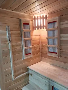 Инфракрасная сауна из кедра представляет собой кабинку с ик-нагревателями. Главное отличие такой кабины от финской парной или классической бани заключается в прогреве тела, а не воздуха. Внутренний прогрев тканей считается полезным и щадящим, за счет чего в инфракрасной кабине могут принимать лечебные процедуры даже дети и пожилые люди.
