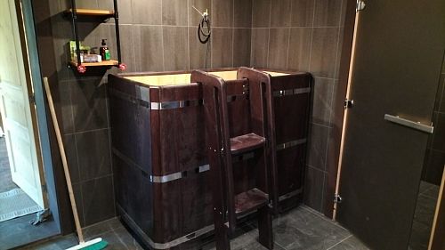Вот такая купель стоит в семейном отеле. За счет пластиковой вставки легко мыть после большого потока клиентов. Пользуемся давно, поэтому на качество проверили!